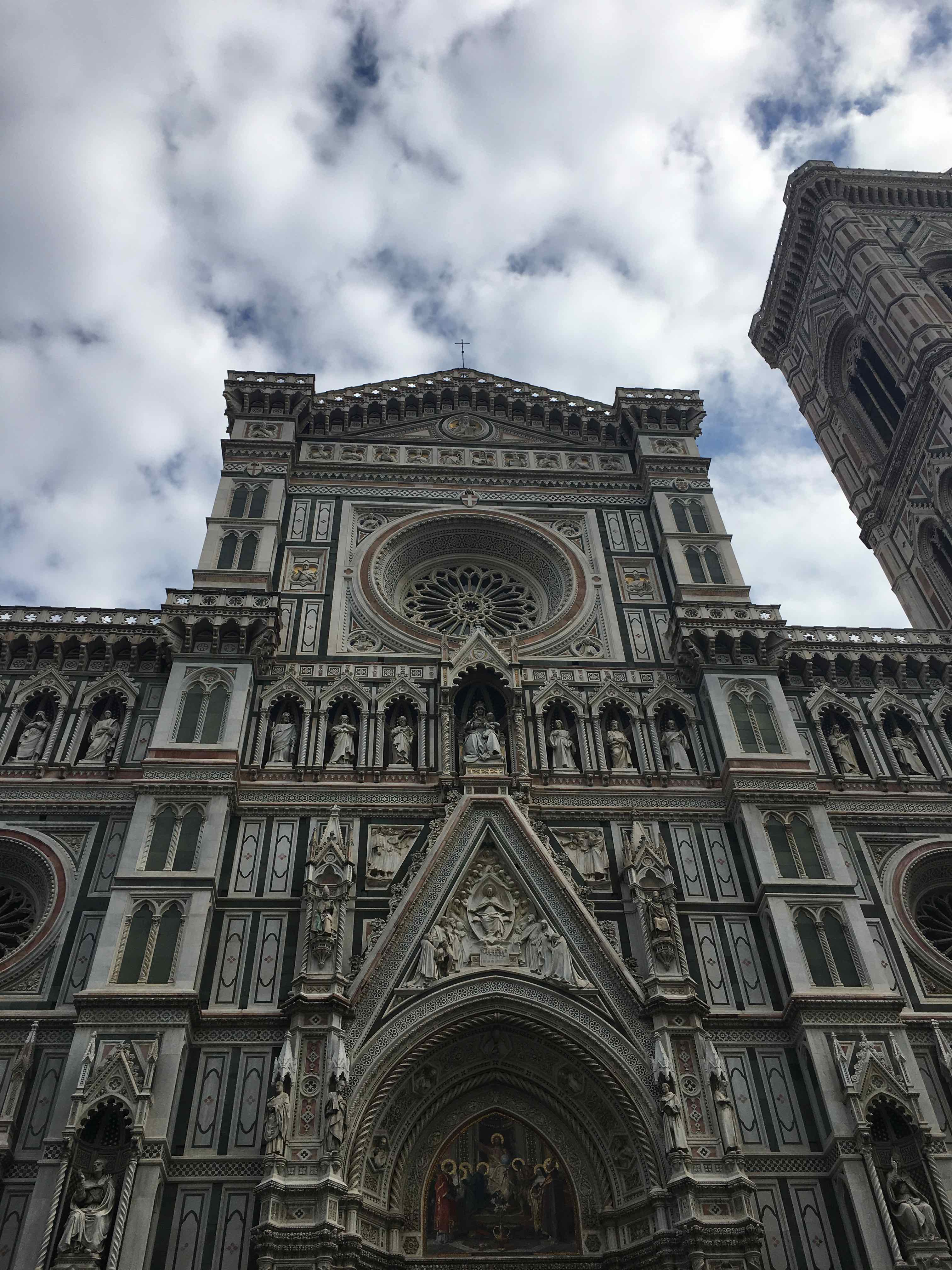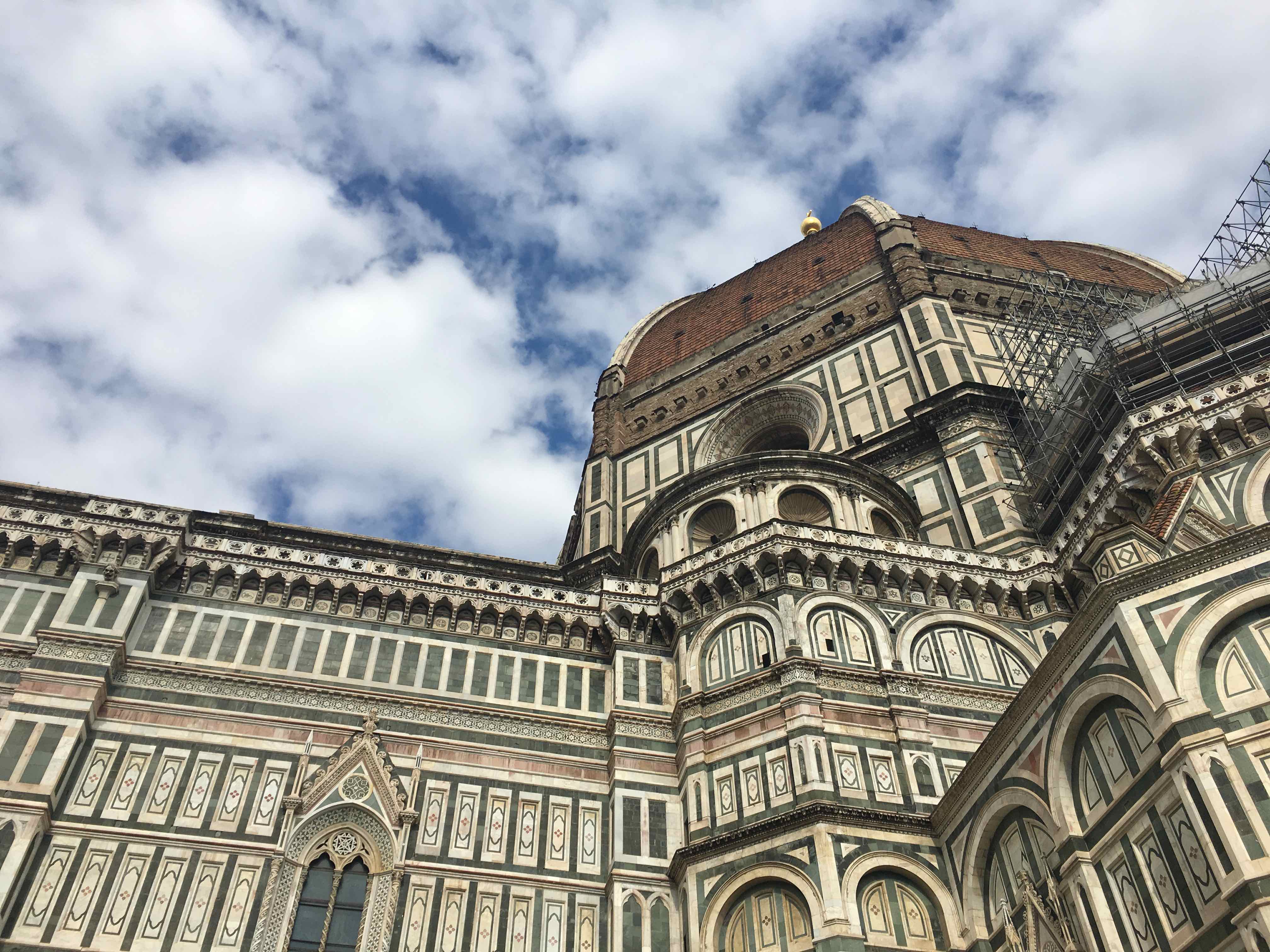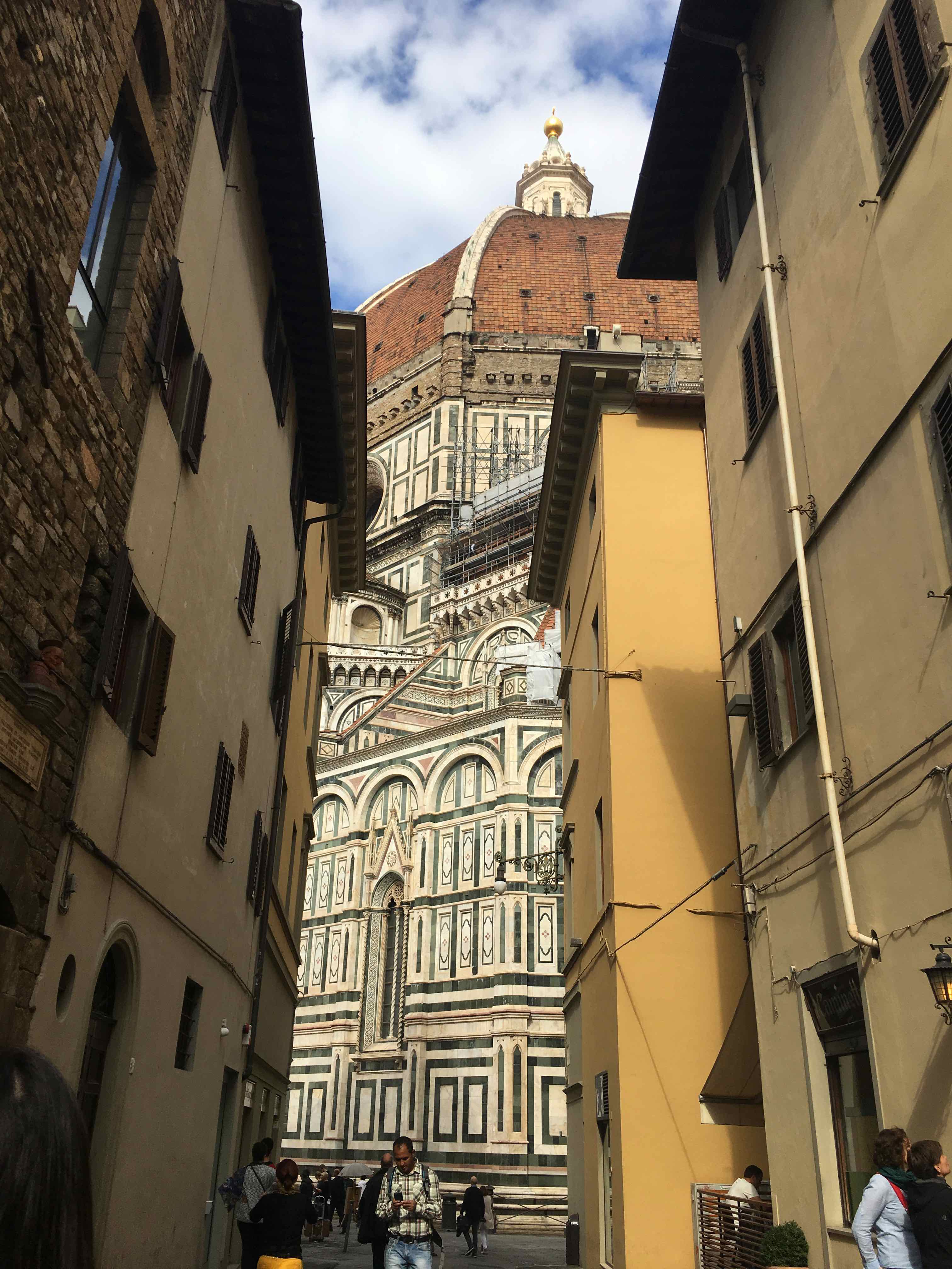 단테의 생가를 지나 "피렌체 대성당, 산타마리아 델 피오레 대성당(Santa Maria del Flore)"에 가는 길이 너무 운치있다. 현재는 '바티칸시국의 성 베드로 대성당, 런던의 세인트 폴 대성당, 밀라노 대성당' 그리고, 그 뒤를 이어 '피렌체 대성당'이 세계에서 4번째로 큰 성당이다. 1296년 건축가 아르놀포 디 캄비오로 시작하여 여러 건축가를 통해 건설되었다. 1334년에 화가이자 건축가인 조토가 총 책임자로 임명되었으며, 건축가 안드레아 피사노가 조수를 맡았다. 1337년 조토가 사망한 후에 여러 건축가를 거쳐갔고, 1418년 "필리포 브루넬레스키(Filippo Brunelleschi, 1377-1446)"가 돔을 건축하게 되어 1436년 완공된다.