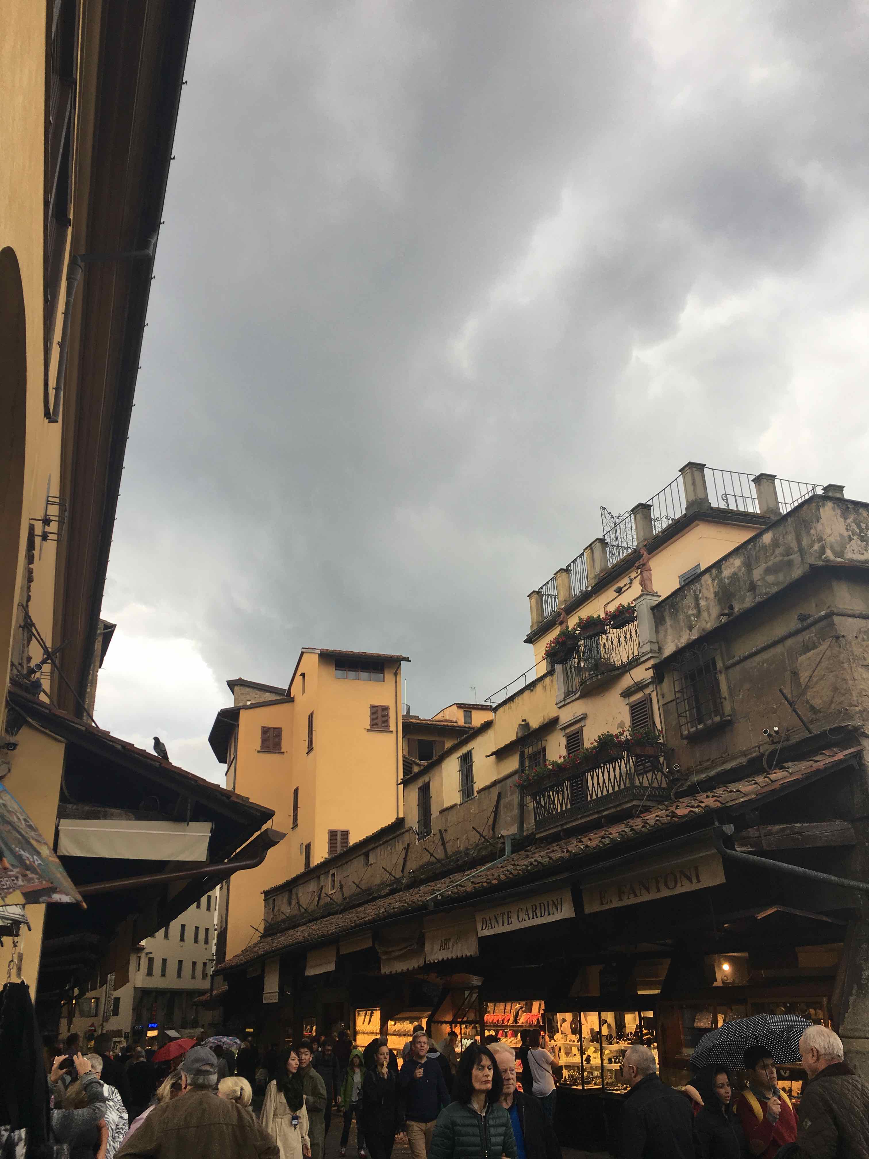 우피치미술관에서 나와 "베키오 다리(Ponte Vacchio)"로 향한다. 아침부터 비가오더니 어느새 비는 그치고 하늘에 먹구름만 남았다. 살짝 "베키오 다리"만 구경하고 다음 일정으로 넘어간다. 이미 전날 한번씩 둘러봤던 곳이라 조금 지루했지만, 투어 멤버와 서로 사진도 찍어주고 했다.